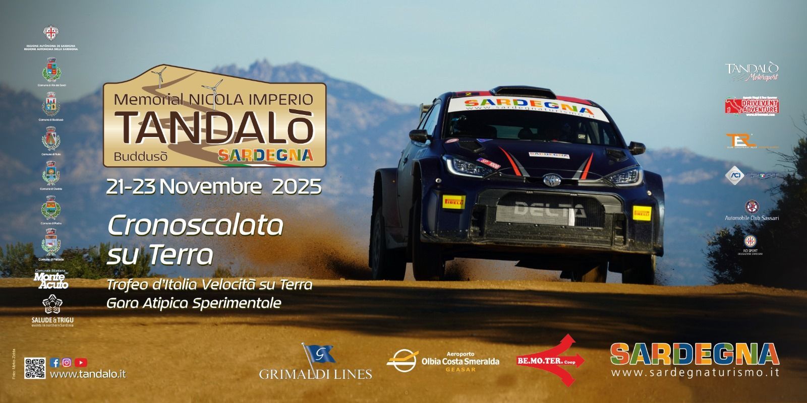 La Cronoscalata su Terra di Tandalò 2025 è in programma dal 21 al 23 novembre e il programma ricalcherà quello delle passate edizioni: venerdì 21 novembre si terranno le verifiche sportive e tecniche nel centro di Buddusò e le prove libere con vetture stradali (ricognizioni), seguite nel pomeriggio dalla cerimonia di partenza e dall’apertura del Villaggio Tandalò, cuore dell’evento. A margine della giornata, alle 18:30, si svolgerà la presentazione del libro di Marco Giordo “Da Alén a Loeb, da Ogier a Zanini” con la partecipazione straordinaria di Miki Biasion, due volte Campione del Mondo Rally, già annunciato quale guest star di questa edizione.